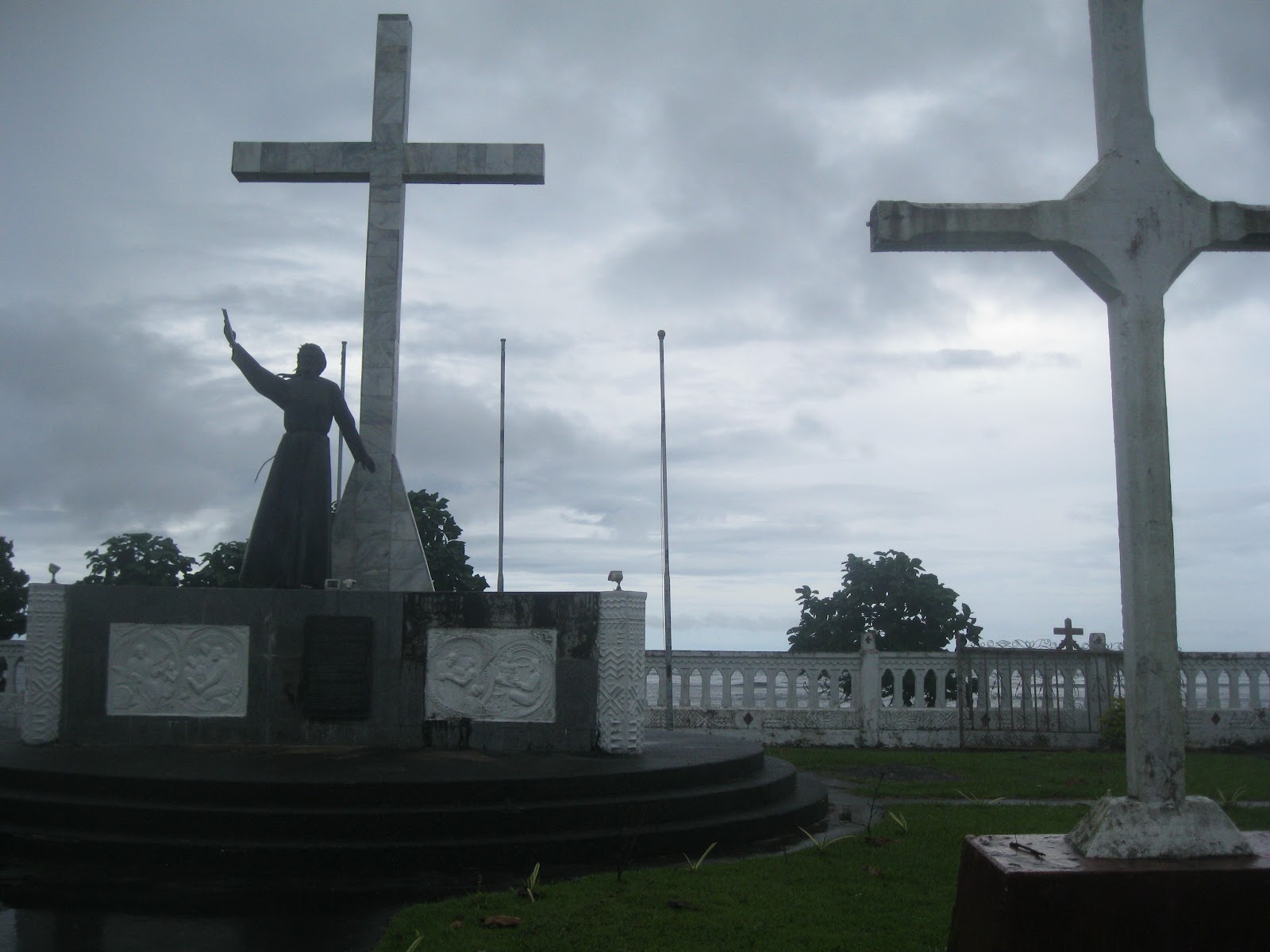 My backpack with a waterproof liner my dad sent is here, which will make me feel safer with my laptop all the time in this "fine" rainy season. Met up with Raina, our fellow volunteer and friend who lives in a small village on the northside in Fagasa Bay. Beth, a volunteer and friend who teaches in Utulei, joined us on this little visit out to Fagasa. Got a ride in the back of Raina's landlord's truck, we got to see her house, her classroom, walked the whole bay, and walked up the hill by her house for a great view. This was the first visitors Raina had out in Fagasa, so she was excited.