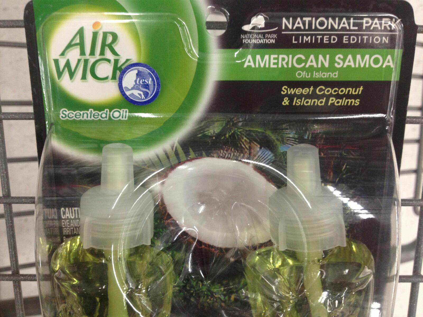 Woke up at 4am my time to make a phone call via Skype with one of my mentors from Morningside at 4:30am (10:30 time back home). He told me he had seen this air freshener on my Facebook page and stumbled upon it in Target one day. Said he bought the candle and now has the scent of American Samoa and thinks of me every time. haha. Limited National Park addition. They have other ones, too, like Denali National Park (Alaska). My friend that originally posted this photo found it in Wal-Mart in Florida. Still kind of cool.